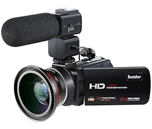 - Besteker New Camcorder: Equipped with 2 in 1 HD 72mm professional 0.39x super wide angle lens with macro lens and professional shotgun microphone, picks up sound more clearly, and shoots more beautiful pictures.